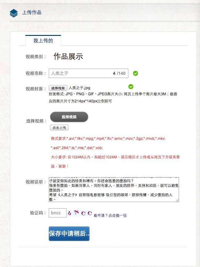 微电影上传失败?